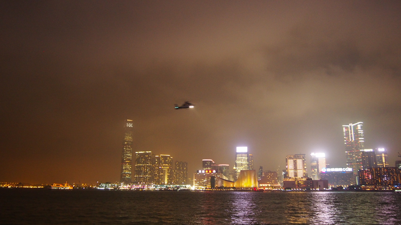 昨年は無かった空中からのヘリコプター襲来がありましたが(灣仔フェリーターミナル方面へ向かいましたが)、いったい何?