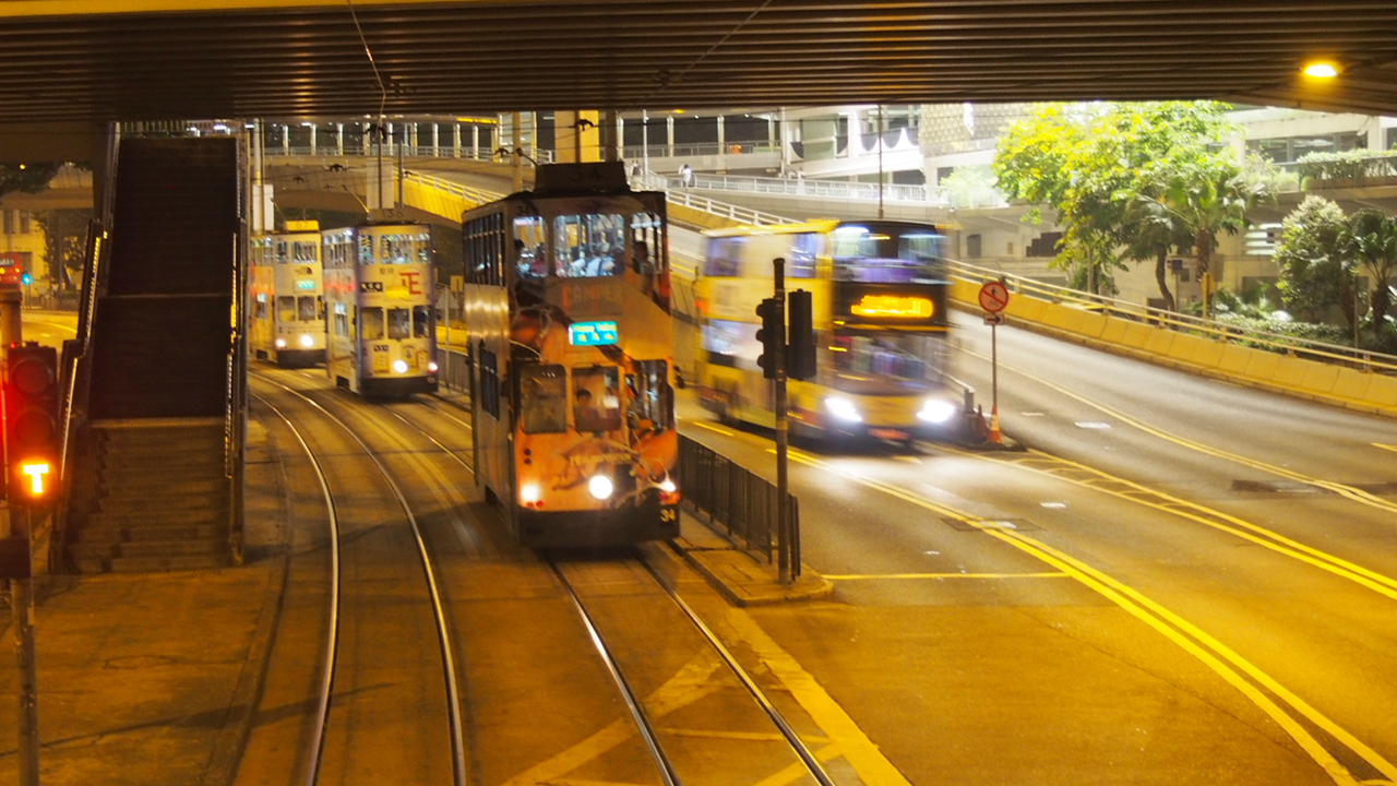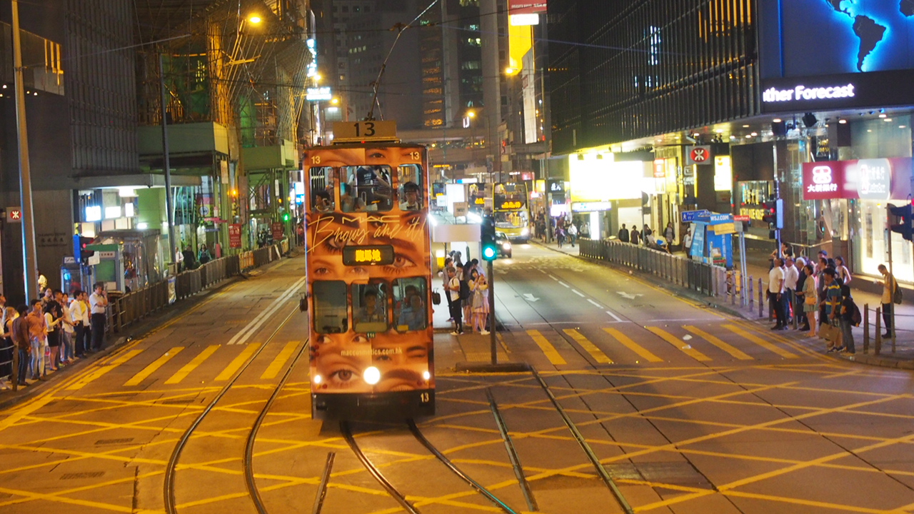 上環でオープンデッキの観光トラムを見かけました。