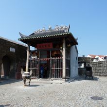 ポルトガル人の居留が始まった頃につくられた防壁で、材料はシュナンボーという、土砂、わら、牡蠣の貝殻を混ぜたもので出来ています。ナーチャ廟のよこにあるのがそれ。Section of the Old City Wallsという名板がはめられている。