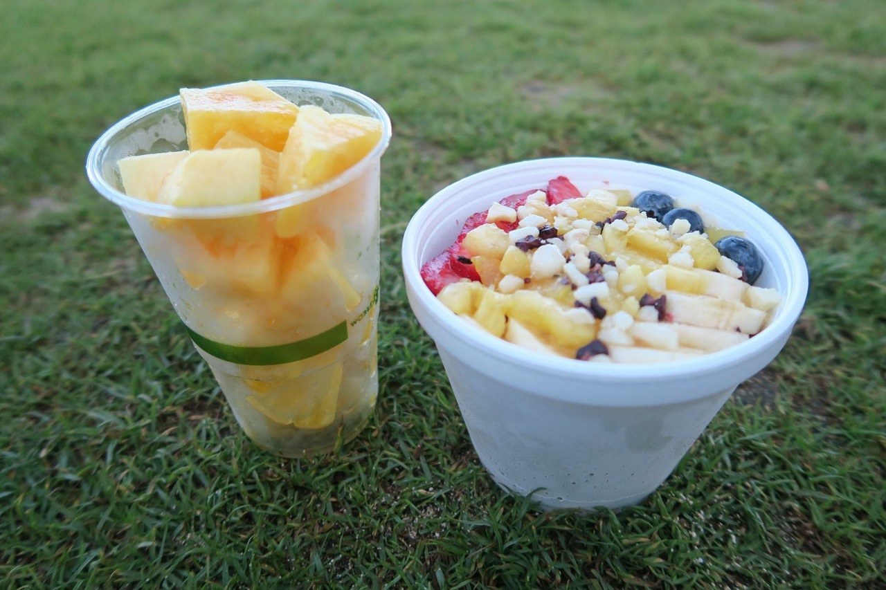 オープンすぐに行ったからか、とても空いていました。カットパインとアサイボウルを買いましたが、どちらもとても美味しかったです。パインが入っているアサイボウルを初めて食べましたが、相性が良かったです。パインは甘かったです!