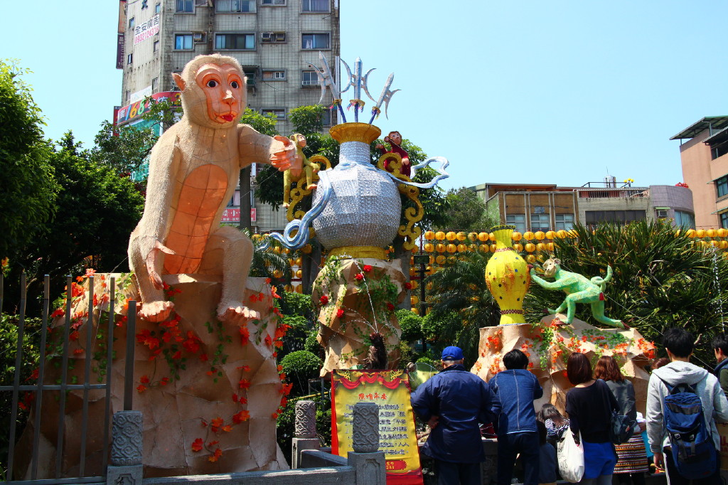 多くの観光客が台北に来たら必ずお参りする龍山寺、孫悟空のような特別展示があった