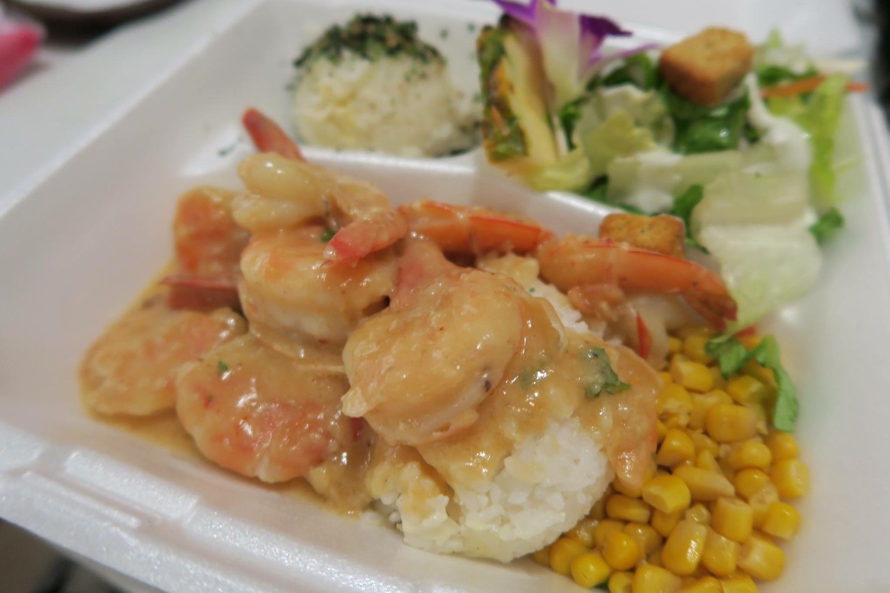ガーリックシュリンプを注文しました。味付けが私好みで、とても美味しかったです。お店の方の対応がイマイチで少し不快な思いをしましたが、ハワイでは安くて美味しいごはんだと思ったので、また行きたいと思います。