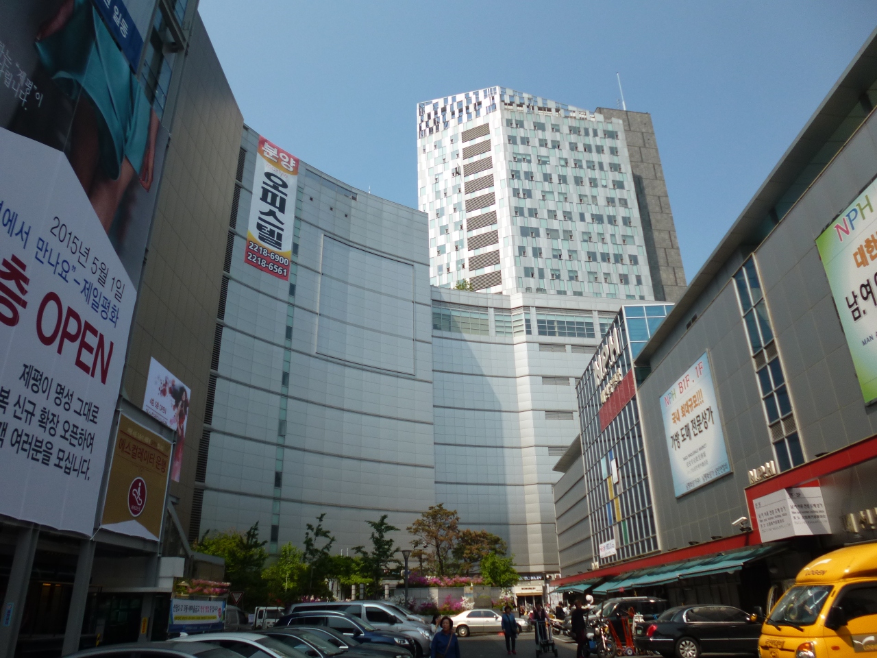 「マックスタイル」は東大門エリアの問屋さんなどがたくさん集まるエリアにあるビルです。雑多なビルが並ぶ中で、外観的に特徴のある目立つビルです。