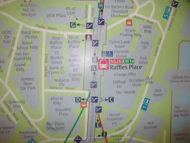 市街地内にあるMRT駅ですが、取り敢えずシンガポールでどこへ行けば解らない、という方はこの駅を目指されると良いかなと思います。東西線利用で空港から直通で行けます(ご存知の通り、タナメラ駅での乗り換えはありますが…)ので、乗り換えが面倒という方にもお勧めできます。私は今回、マーライオンさんの方へは立ち寄りませんでしたが、ここからマリーナベイ方面も近いので、”ザ・シンガポール”といった風情を楽しみたい方は、まずこの駅に降り立って散策を始められると良いかと思います。また、反対方向には意外とチャイナタウンも近いので、特にチャイナタウンの北側エリア散策をされる方も、この駅の利用がお勧めです。ただ街中の駅なので、特にラッシュアワーは混雑も凄いので、該当する時間帯のMRT利用は出来るだけ回避される方が良いです。