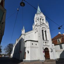 じんまりとした、正面の外観では想像できない奥行きの長さです。白が美しく正統派のカトリック教会と言った感じです。