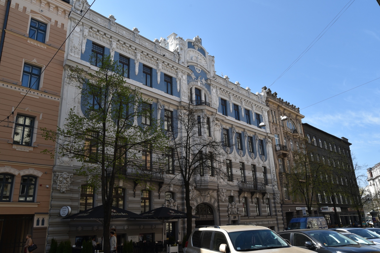 ユーゲントシュテール建築が多く集まる地区で、右も左も珍しい彫刻に見上げるのが忙しいくらいです。