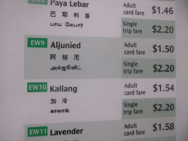 シンガポールの空の玄関、チャンギ国際空港にはMRTが直結していて便利なのですが、キップの購入やカードのリチャージに関しては、まだまだ改善の余地があるように、訪新の際に思ってしまいます。勿論、空港駅ですので、ここは観光客の利用が非常に多く、自販機で勿論スタンダードチケットも購入できますし、カードの購入・リチャージも可能なのですが、自販機の数が少なく、行列が出来ていることが多いので、リピーターの方は出来れば次の訪新を見込んで、EZLinkカードに残高を残しておいて、空港内では自販機に立ち寄らずにそのままタッチして移動、リチャージは他の駅で、という流れの方が時間を有効に使えるかと思います。ただ、EZlinkは、最終の使用やリチャージから5年が経過すると無効になってしまいますので、5年以内に再度シンガポールを訪問するか否かが不明な方は、一回当たりの運賃は高くなりますが、その都度スタンダードチケットを購入した方が安全かもしれません。また、IC運賃利用の際も、日本の多くの地下鉄の運賃体系のような区毎の運賃設定ではなく、駅毎にMRTの運賃体系は少しずつ変わりますので、乗車前に自販機傍の運賃表で目的地までの運賃をこまめに確認する習慣をつけた上で乗車されると良いです。