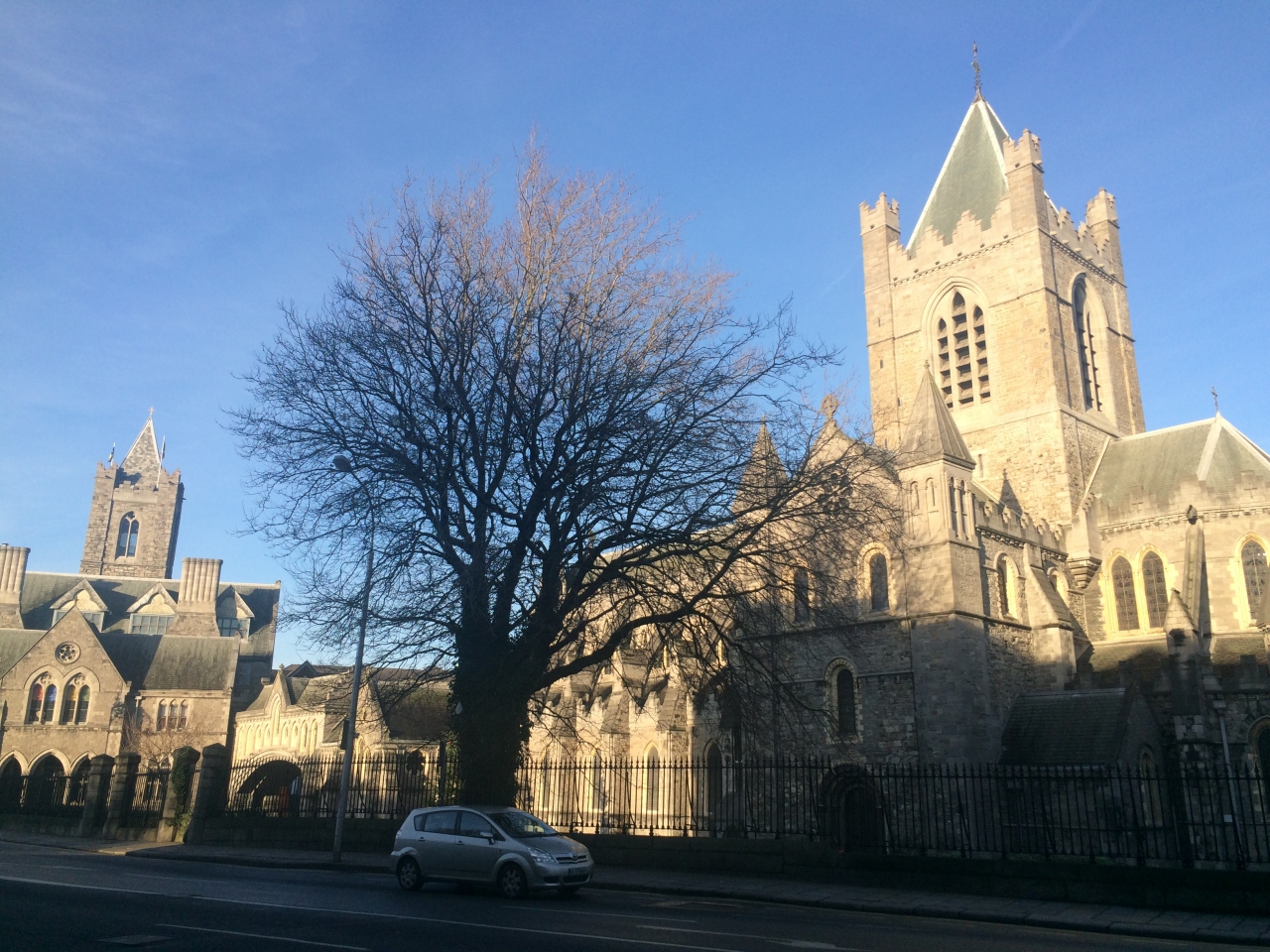 11世紀にバイキング系の王が建てた教会がもとになっており、その後イギリスの統治時代を経て今に至る、ダブリンでも由緒ある大聖堂で、ダブリンの街を見続けてきた建築物といってもよい存在です。近くに聖パトリック大聖堂があり、一教区に2つの大聖堂があることがいろいろな複雑性をもたらしていると同行のガイドから案内がありました。地下の聖堂は12世紀に端を発するものとのことで、古さを感じさせていました。