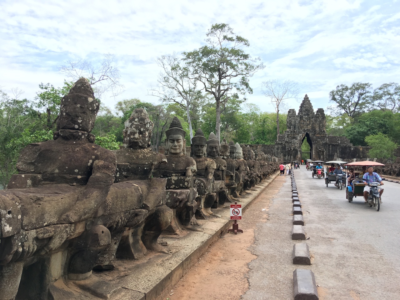 アンコールワットの北に位置し、無数の仏様の顔が彫られた塔壁で有名なバイヨンを中心とした遺跡です。バイヨンまでは南大門からも数kmあり、炎天下に歩いて移動するのは大変危険で、タクシーやトゥクトゥクを利用しました。