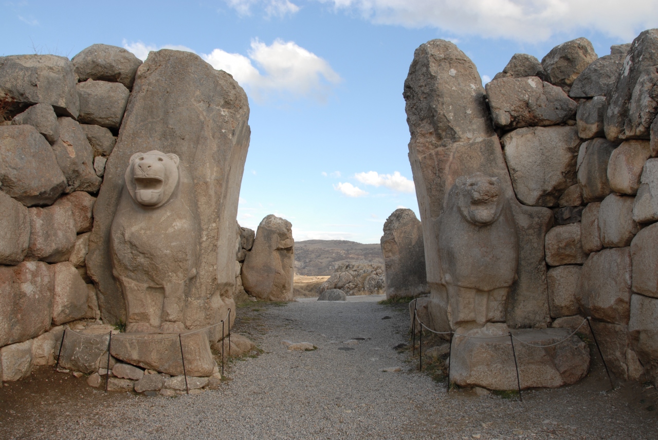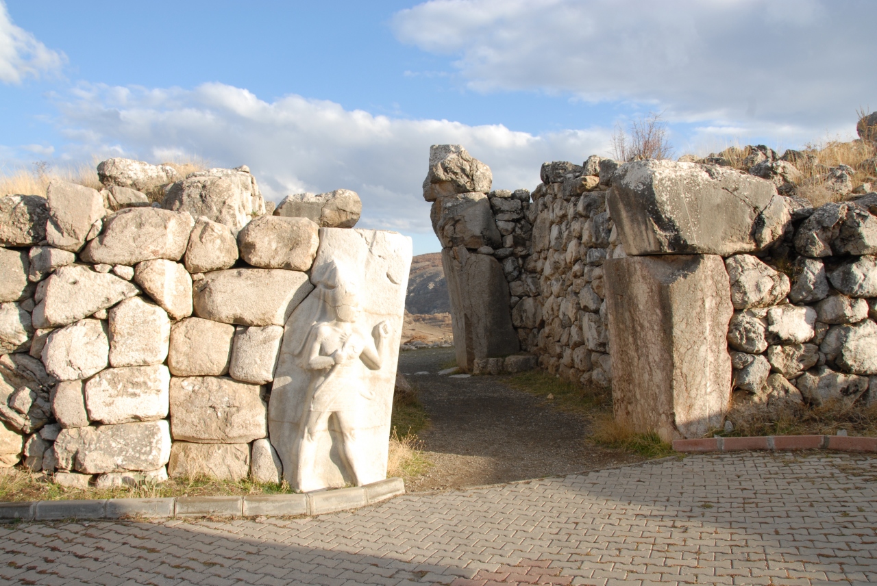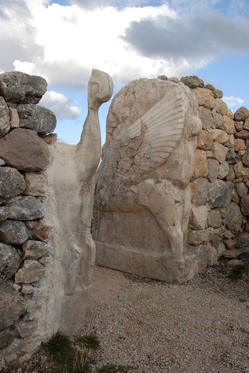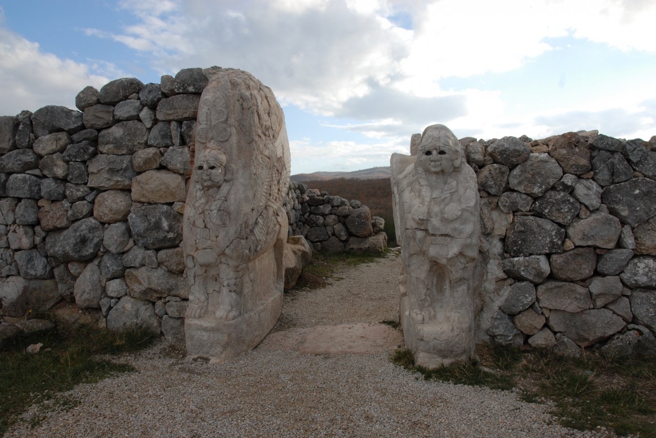 ヒッタイト帝国の面影を残す遺跡のスケールが広くて驚きました。石を積み上げた門や城壁が現在でもほぼ完璧な姿で残っているのには大感激しました。石の門をくぐって振り返ると、ライオンの像が左右に見えます。左側のライオン像は痛みがひどくて、最近の修復作業で顔が復元されています。また、上の方へ車を進めると、突撃門に入り30mほどのトンネルがあります。トンネル部分の真ん中辺りはとても暗いので足元に気を付けたほうがよいです。トンネルを抜けて、さらに左側を行くと、ピラミッド風の石垣が見えます。この石垣の間の階段を上がっていくと、首の長い鳥と羽根のある動物の門が見えます。
