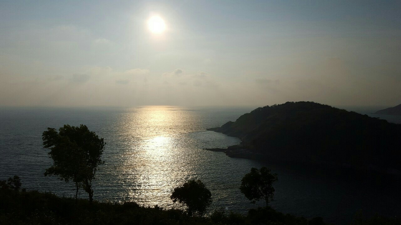 時間の経過とともに沈む夕日が海の色を変えて行きます。