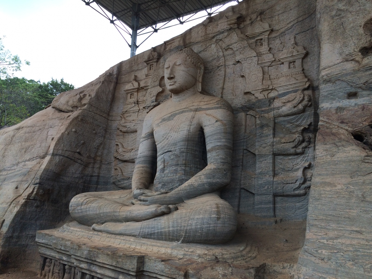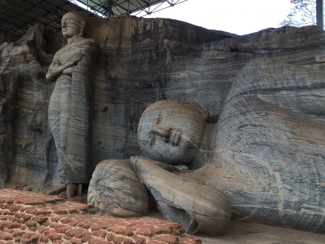 大きな一つの岩に彫られた仏様の表情がとても穏やかで、炎天下の中観光してる自分に何か悟りを与えてくれそうな様子でした。岩には独特な模様が入っており、丸みを帯びた彫刻と相まって柔らかい印象を与えていました。30分ほどで見て回ることができました。