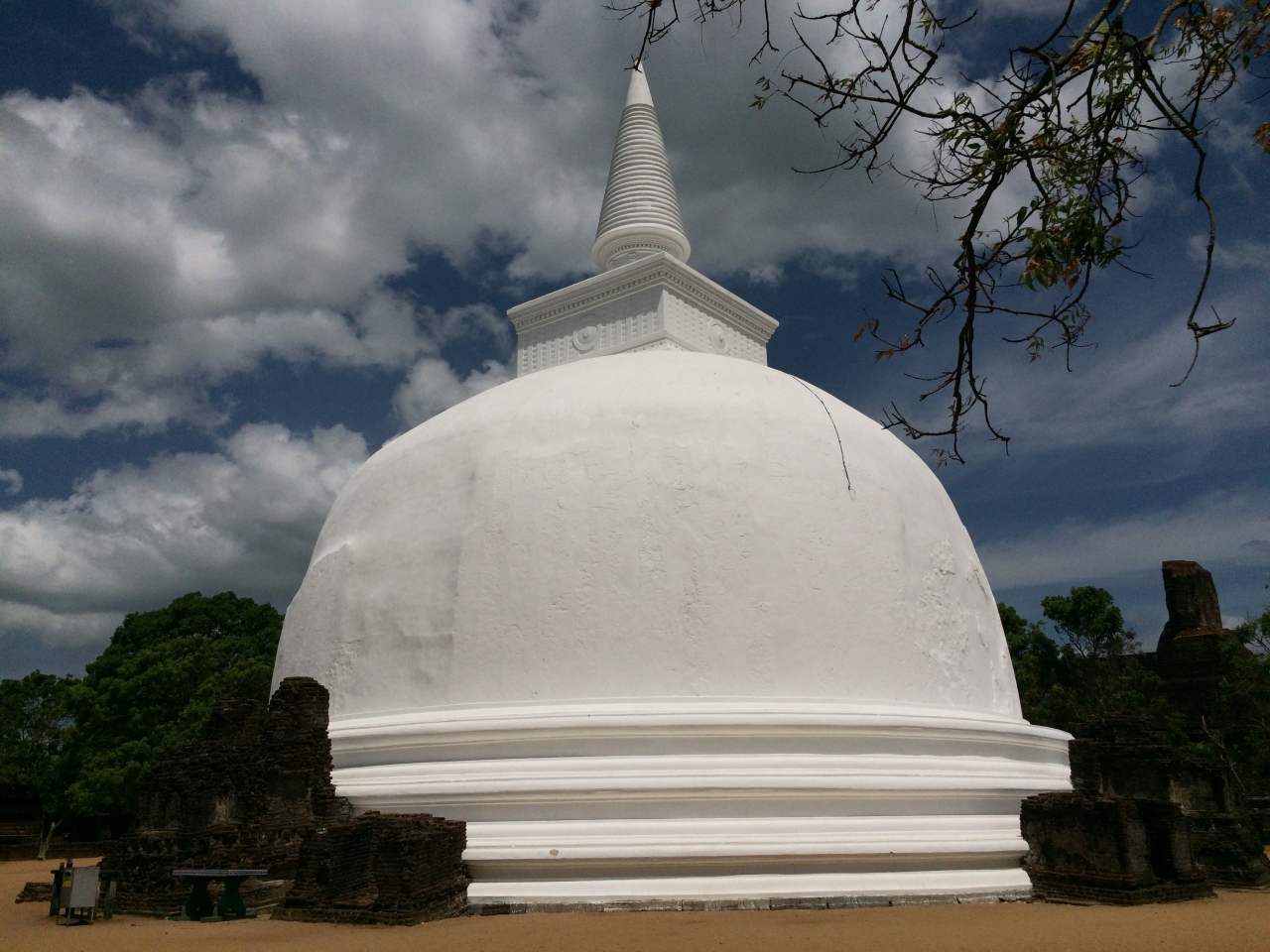 外壁が茶色のランコトゥヴィハーラにプレーンヨーグルトをかけたような、と形容すると怒られそうですが、形はほぼ同じで、建築当初の様に復元するために塗装された白い漆喰が目に飛び込んできました。赤い土壌とのコントラストも良かったです。当然ですが登ることは禁止されています。