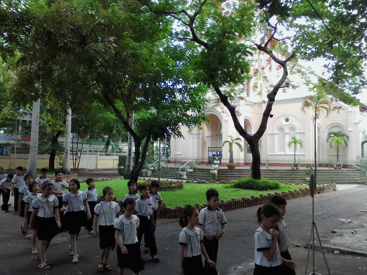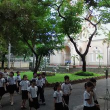 教会自体はいたって普通だと思いますが、実はちょっと面白い教会です。両隣りに同じ小学校の校舎があり、互いの行き来用に教会の敷地内側にも出入口があります。なので時折児童が協会の前を歩いている姿が見られます。また運動場代わりにも使用されているのか敷地内走っているのも見ました。なんかほのぼのしてていいです。