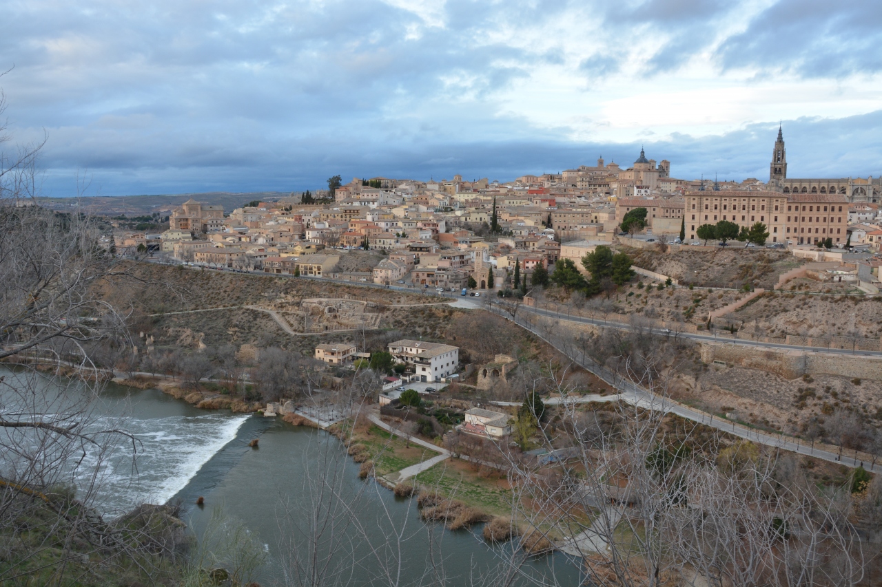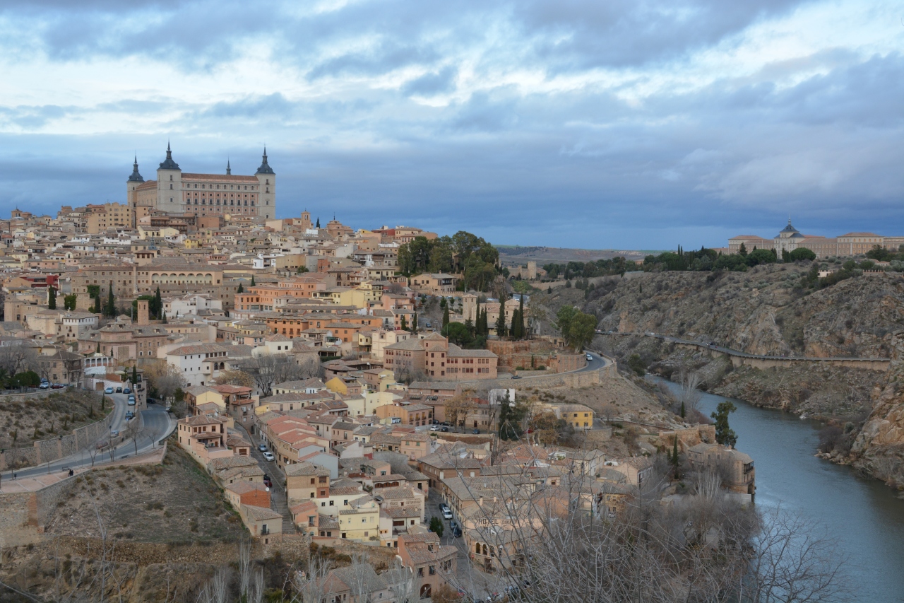 山の中腹を走る道路の脇にトレドの旧市街を望む絶景ポイントがあります。展望台というよりは路肩脇の歩道で眺める場所です。車の往来があるので気を付けた方が良いです。旧市街の前にはタホ川が流れていて雄大な景色を作っています。教会や博物館・学校などの建物が遠くに見えて旧市街が一望できます。他の観光客も写真をばんばん撮っていました。