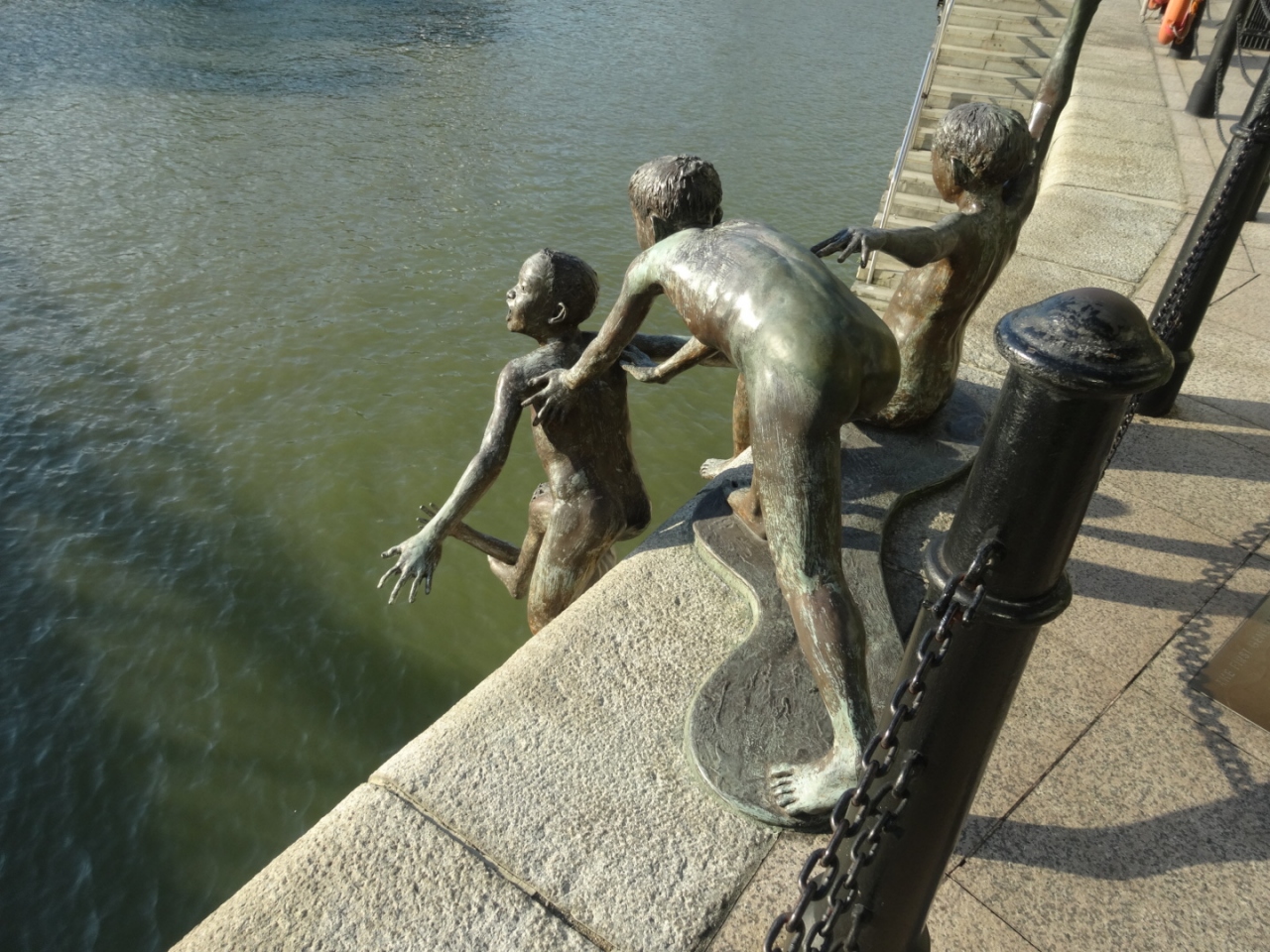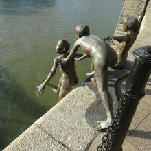 シンガポール川の近辺には、昔のシンガポールの人々の生活を知れる銅像がいくつか設置されているようです。私は、この「川に飛び込む子どもの像」しか見つけられませんでした。フラトンホテルの近くにあって、わかりやすい場所にあると思います。