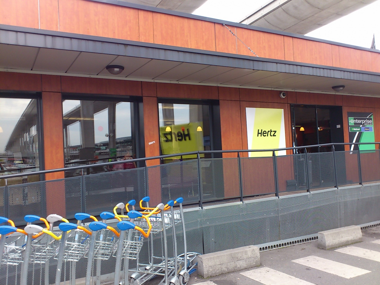日本からのフライトはほとんどCDGのターミナル2Eに到着するのではないでしょうか。荷物をピックアップした後、左に向かって進んでいくと、鉄道のERAへ向かうエスカレーターがありますが、そこあたりで外に出るとレンタカー屋の事務所が集まってあります。ハーツやエイビス等の有名どころです。日本からカーナビ付きでオートマを予約しておく方が無難です、ヨーロッパではほとんどがマニュアル車なので、当日オートマ車がないと、えらい目にあいます。