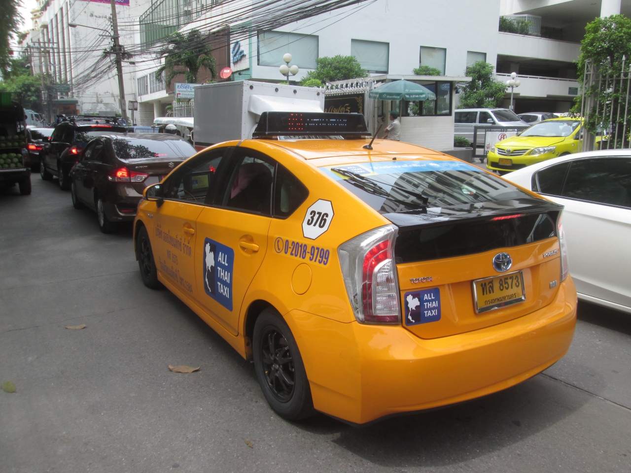 バンコクのタクシーにイエローキャブが登場しました。これまでのバンコクタクシーの外観とは少し異なります。米国や韓国製の車両ではなく、日本のプリウスを使用しているところが嬉しいです。あいかわらず渋滞の影響を受けていました。