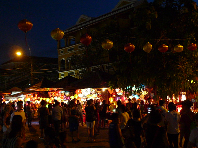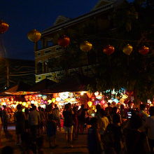 手前のラーホイ通りまでランタンが店先に並びます。