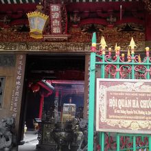 お寺の入口には「Hoi Quan Ha Chuong」の文字が。日本語ではハチュオン會館と訳されます。普通、お寺は「Chua」と言いますが、ここは「Hoi Quan」なので「會館」となります。「會館」とは海外に移住した華人がコミュニティを維持するために使われる集会場のこと。會館の中に祀り事を行うためのお寺(廟)を作ることもあります。