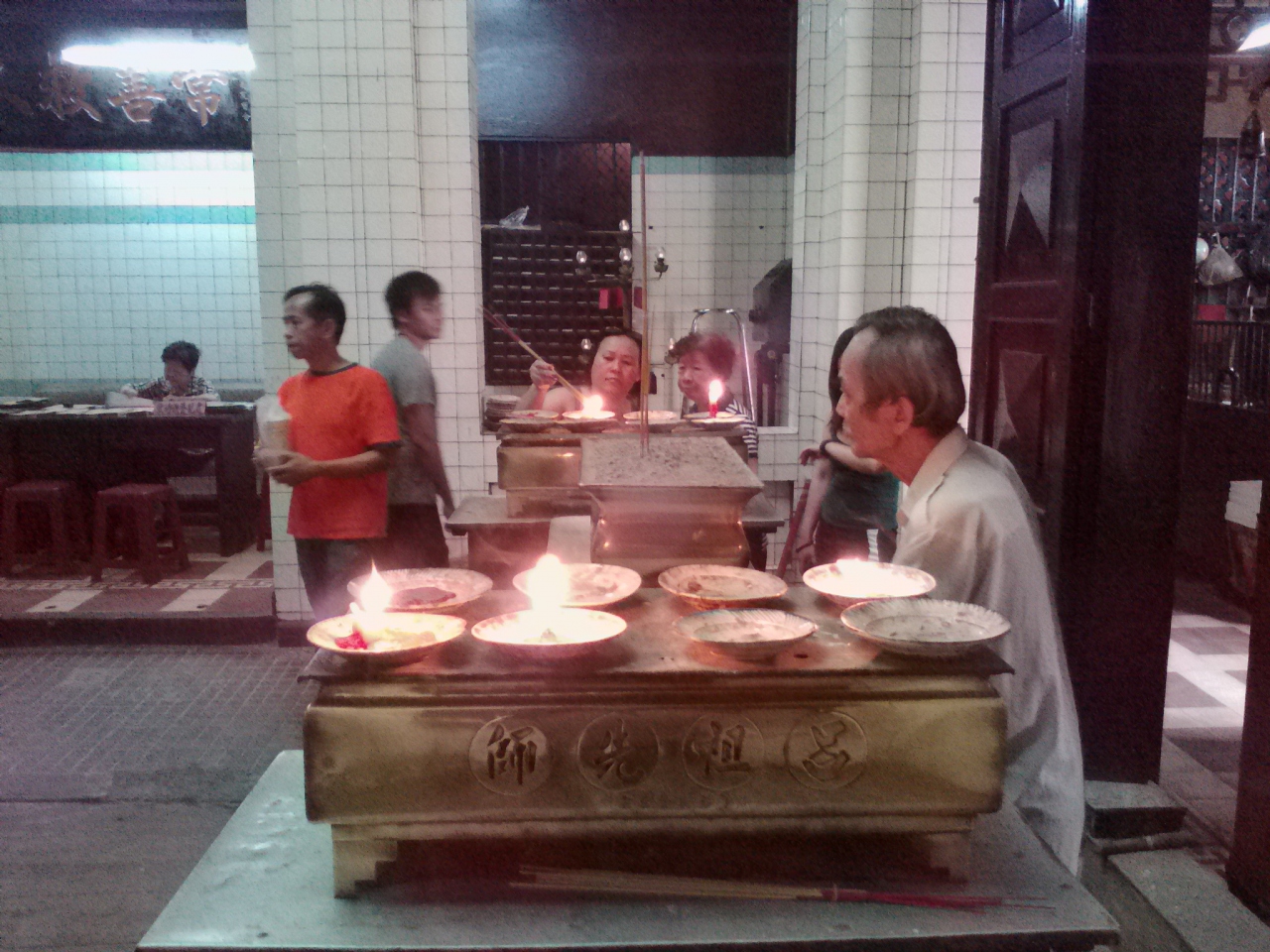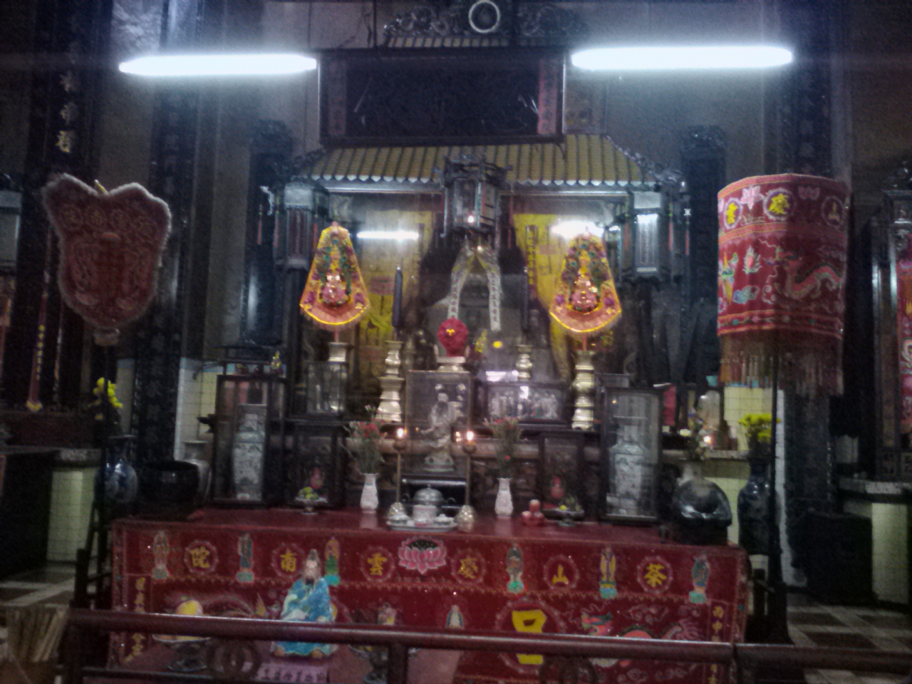 1939年~42年に広東出身の華僑によって建てられた寺院。ベトナムでは少ない道教の寺の一つです。外観は赤一色ですがチョロンに数多くある一般的な中国寺院に比べると派手さは控えめで落ち着いた感じがします。祭壇には道教のシンボルでもある陰と陽を表した太極図が祀られています。