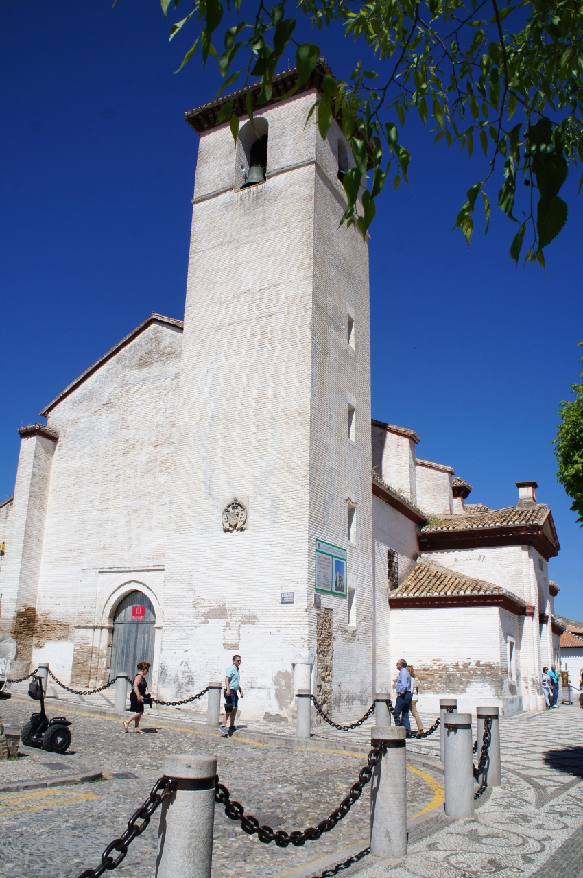 サン・ニコラス広場に立つ小さな教会です。広場からもアルハンブラ宮殿の全景を見ることができますが、いつも観光客でいっぱい、人の映りこまない写真を撮るのは困難です。教会の塔は有料(2ユーロ)ですが、塔の上の展望台からはシエラ・ネバダとアルハンブラ宮殿の絶景を独り占めできました。