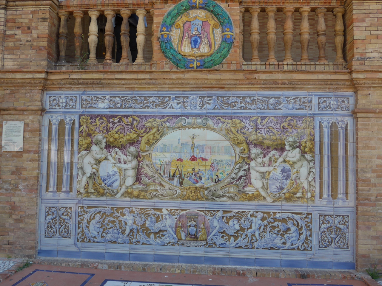 また周りの壁には沢山のタイルで描かれたベンチがあります。.