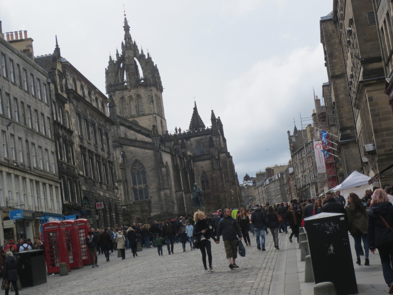 ホリールードハウス宮殿からエジンバラ城に繋がる旧市街のメイン通りです。古い町並みに好感を感じました。エジンバラ城に近づくにつれ、毛織物まわりの土産物屋やレストラン、カフェの密度が上がる感じです。石畳の通りは観光客で賑わっていました。