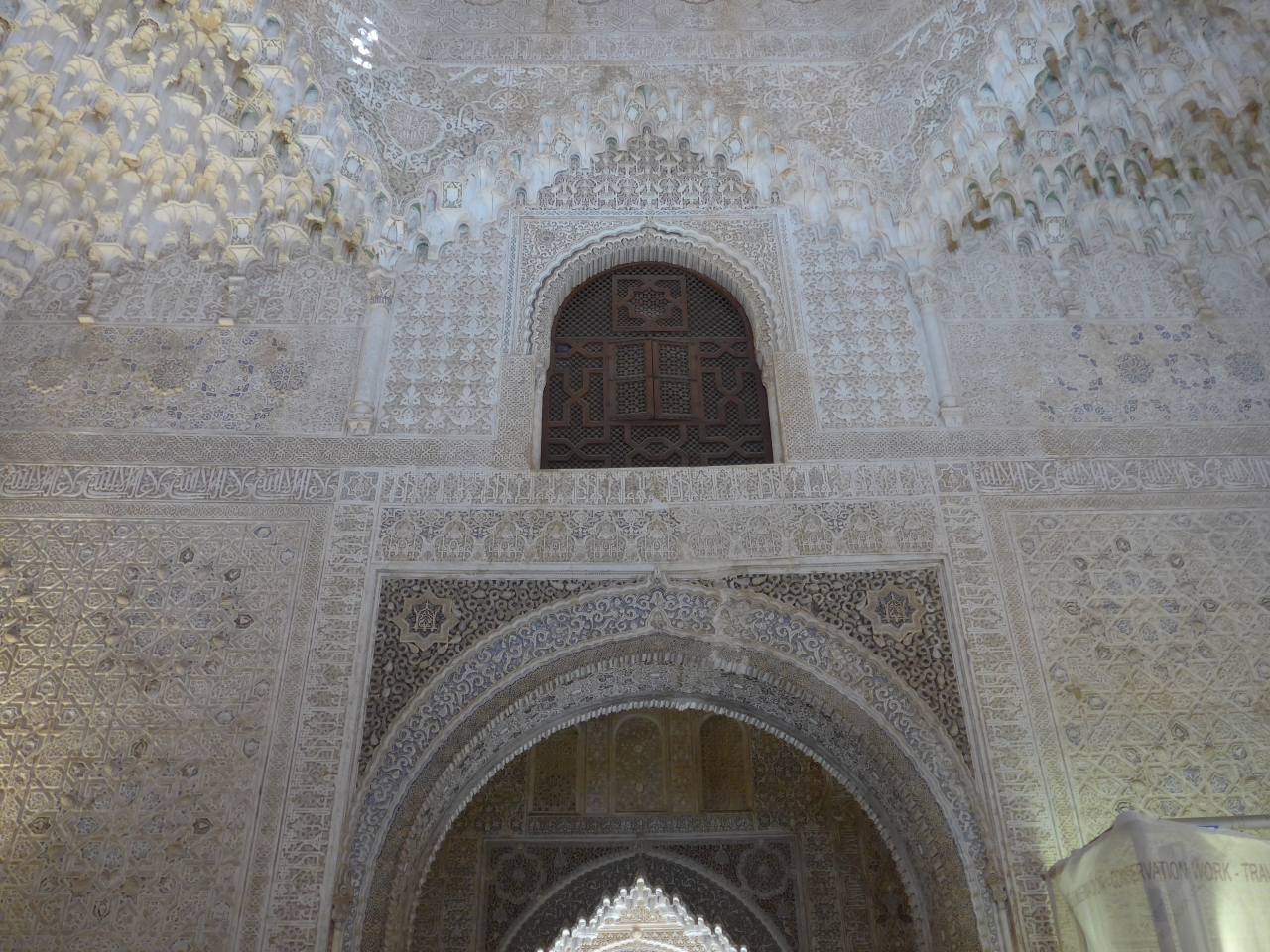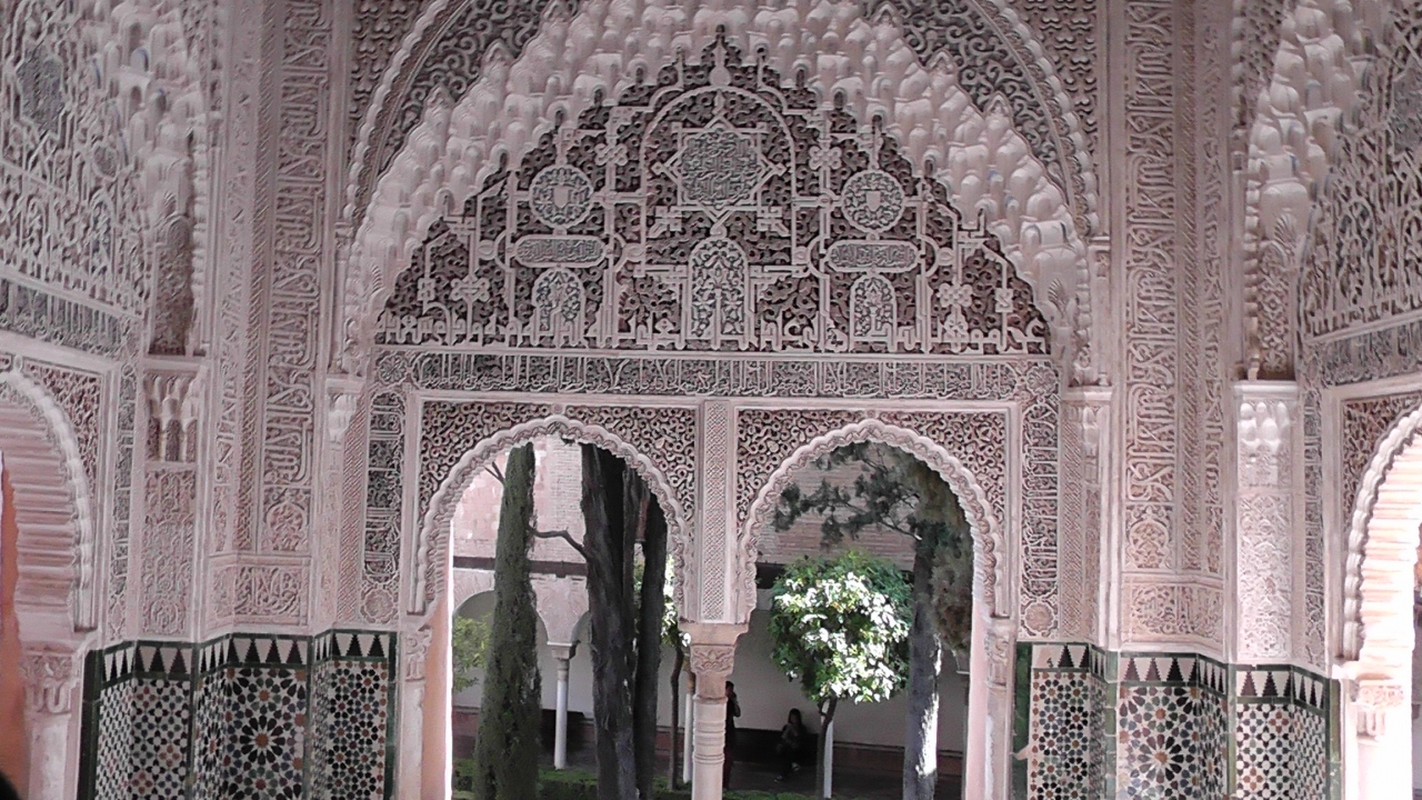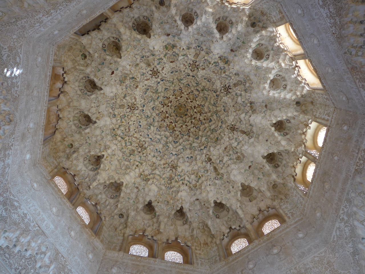 アルハンブラ宮殿内においてナスル朝宮殿で一番の見所てせあるライオン宮・中庭の北側に位置するライオン宮の中にあっては一番古いとされる間が「二姉妹の間」です。ここでのポイントはモカラベ様式の八角形の天井です。奥にはリンダラハの望楼があり中庭も見る事が出来ます。