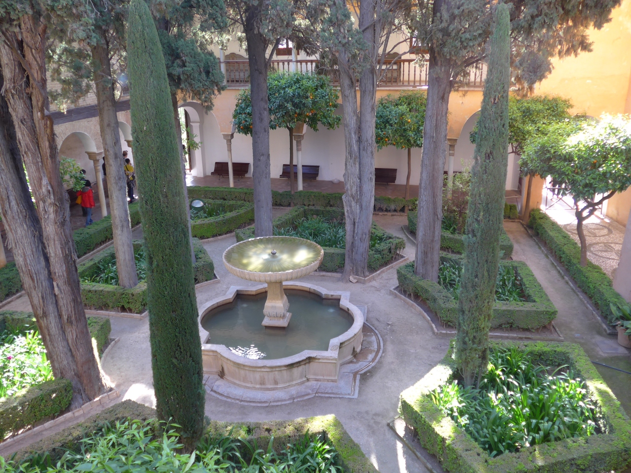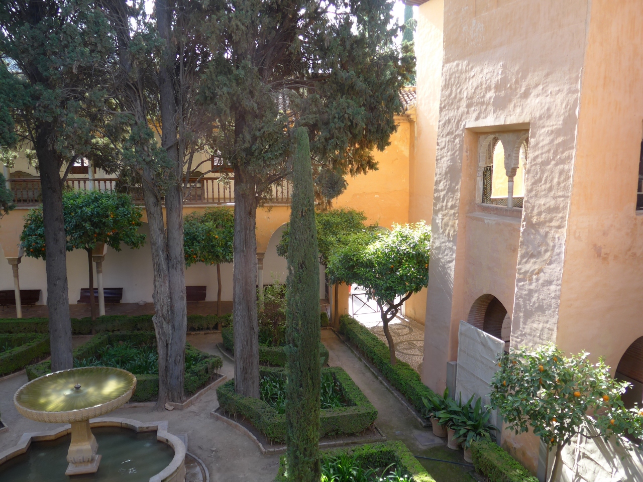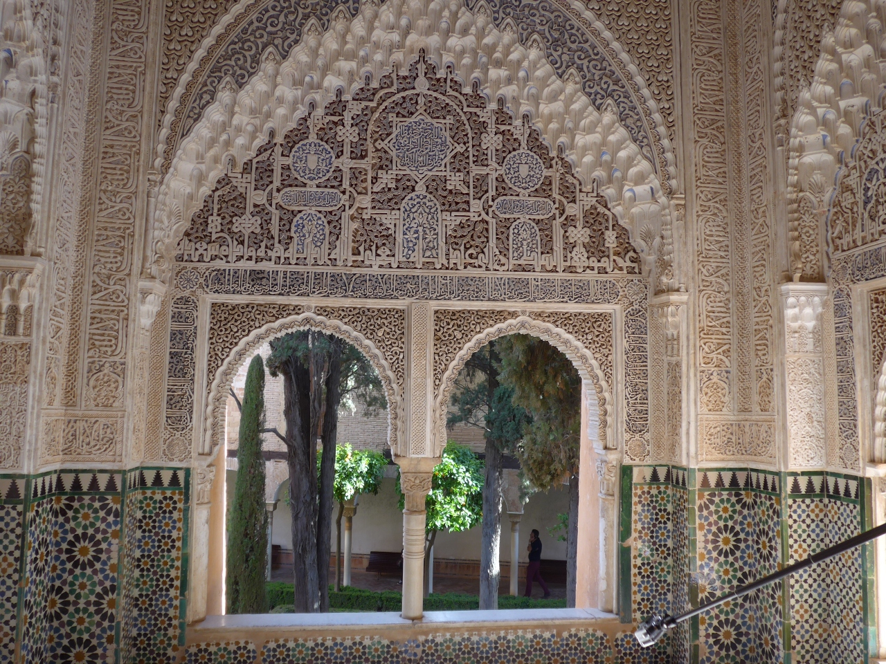 アルハンブラ宮殿内においてナスル朝宮殿で一番の見所てせあるライオン宮・中庭の北側に位置するライオン宮の中にあっては一番古いとされる間が「二姉妹の間」です。ここでのポイントはモカラベ様式の八角形の天井です。奥にはリンダラハの望楼があり中庭も見る事が出来ます。