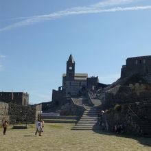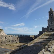 少し小高くなった岬の先端にあるので、城壁、海、教会、あとは空だけ、というとても美しい景色が広がるロケーションです。