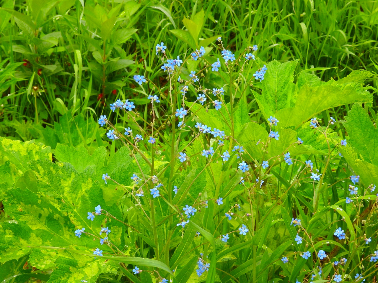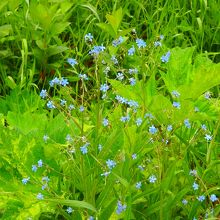 最初、それほどエメラルドでもないと思いましたが、対岸から見ると、きれいな色でした。お天気が曇りだったので、いまひとつ地味な感じがしましたが、晴れていたら、もっとキレイなのかもしれません。湖畔に咲いている忘れな草がかわいらしかったです。