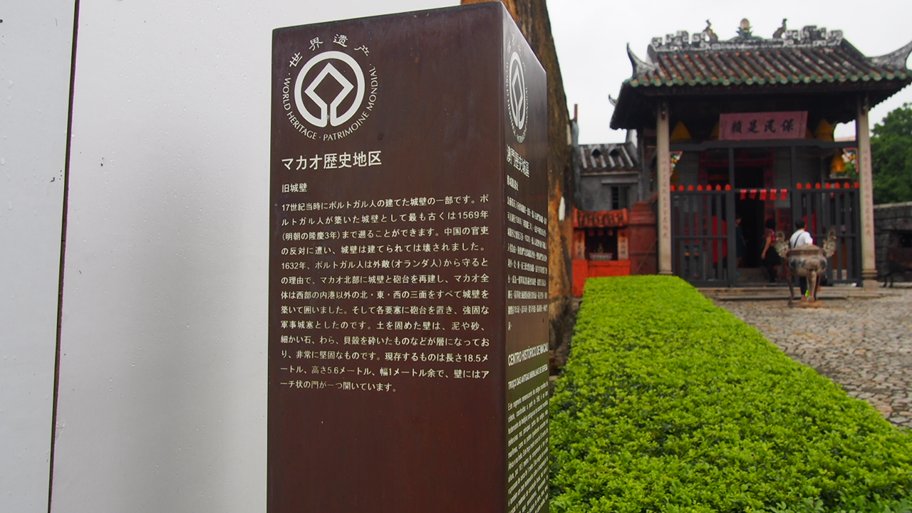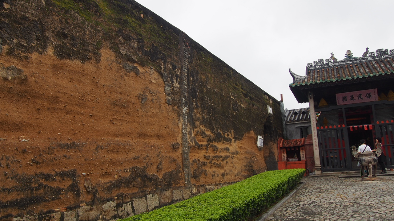聖ポール天主堂跡を左手に進みと、右にナーチャ廟があり左手の茶色い壁が旧城壁です。