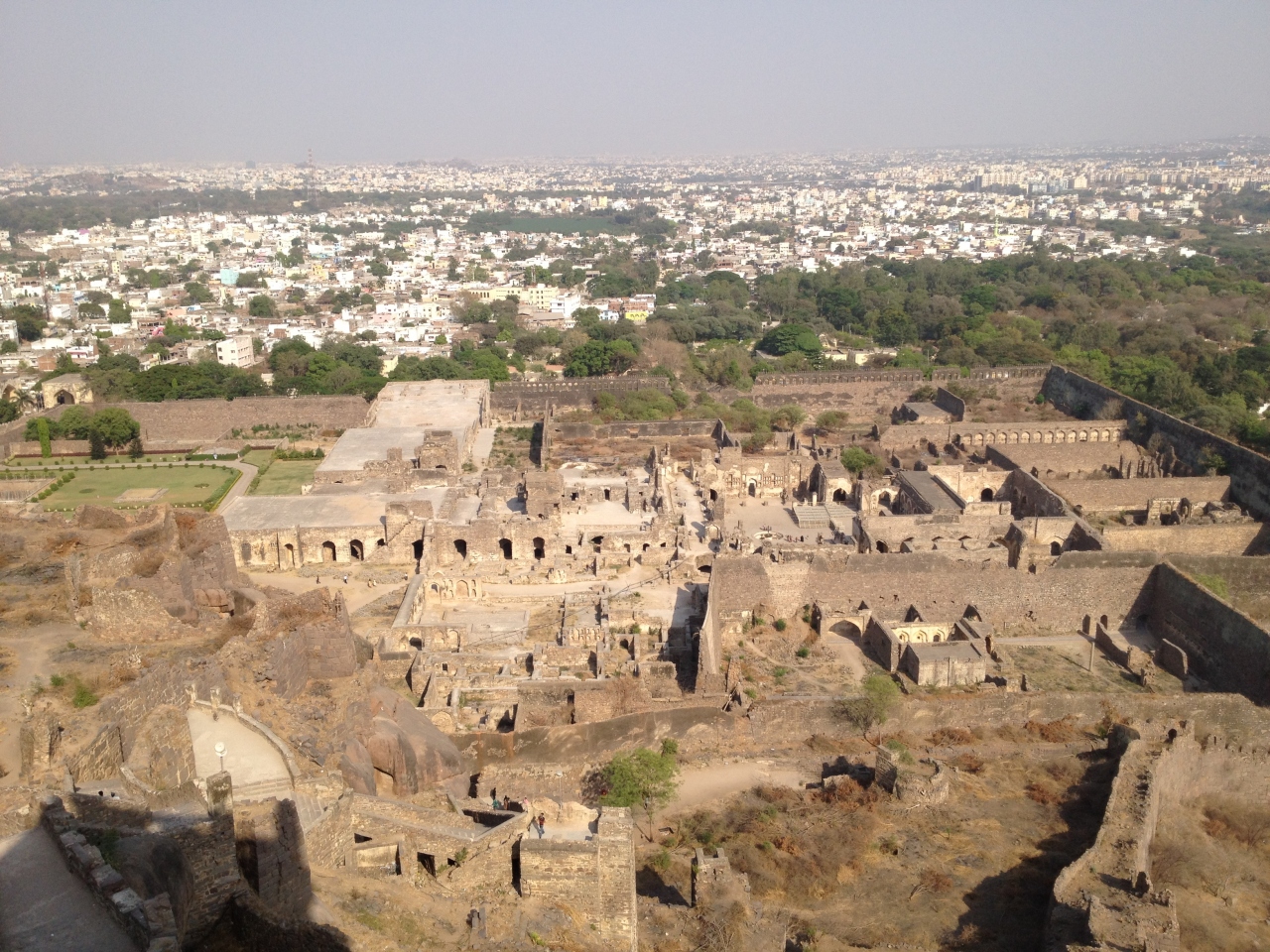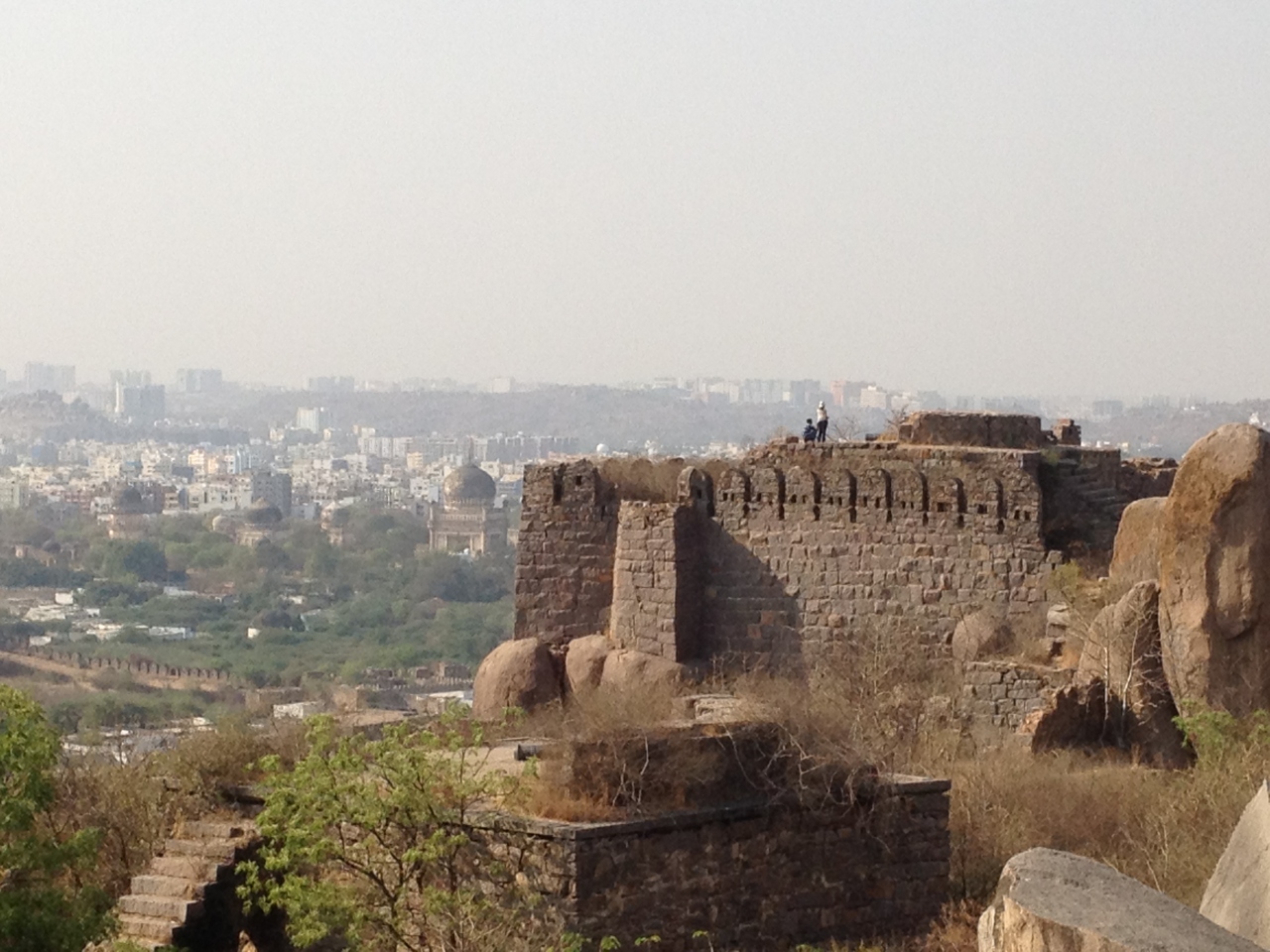 11世紀から14世紀にかけて勃興したヒンドゥー王朝であるカーカティーヤ朝の時代に丘の上に建設された砦であり、王宮であったことが発掘や歴史書から判明しています。駐車場からは20分ほど勾配の道を歩くため、水分補給が必要でした。砦内部には昔の宮殿の後があり、高台からは1518年から統治を始めたゴールコンダ王国の霊廟を遠望できました。