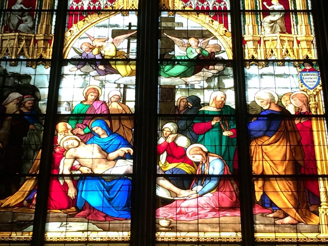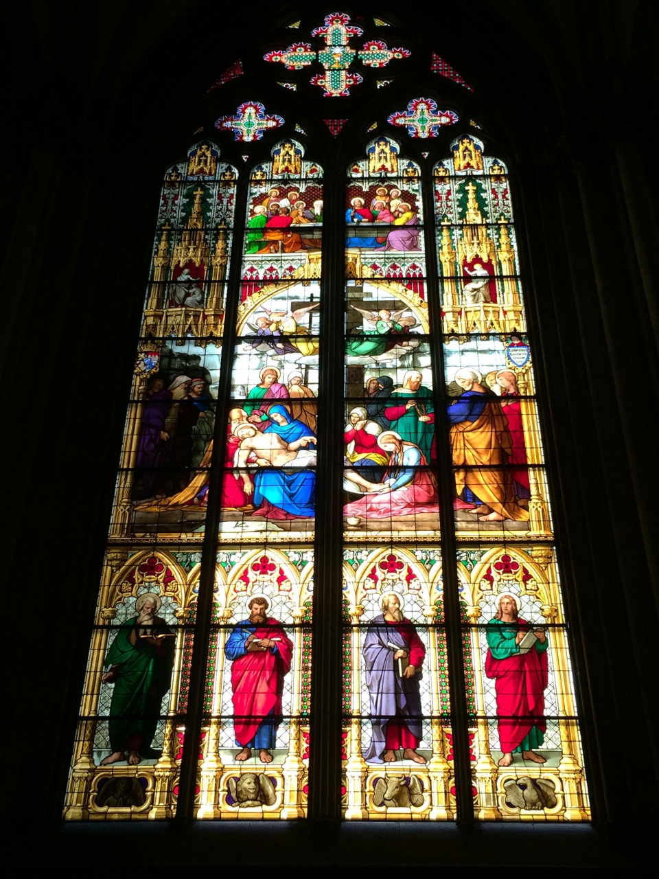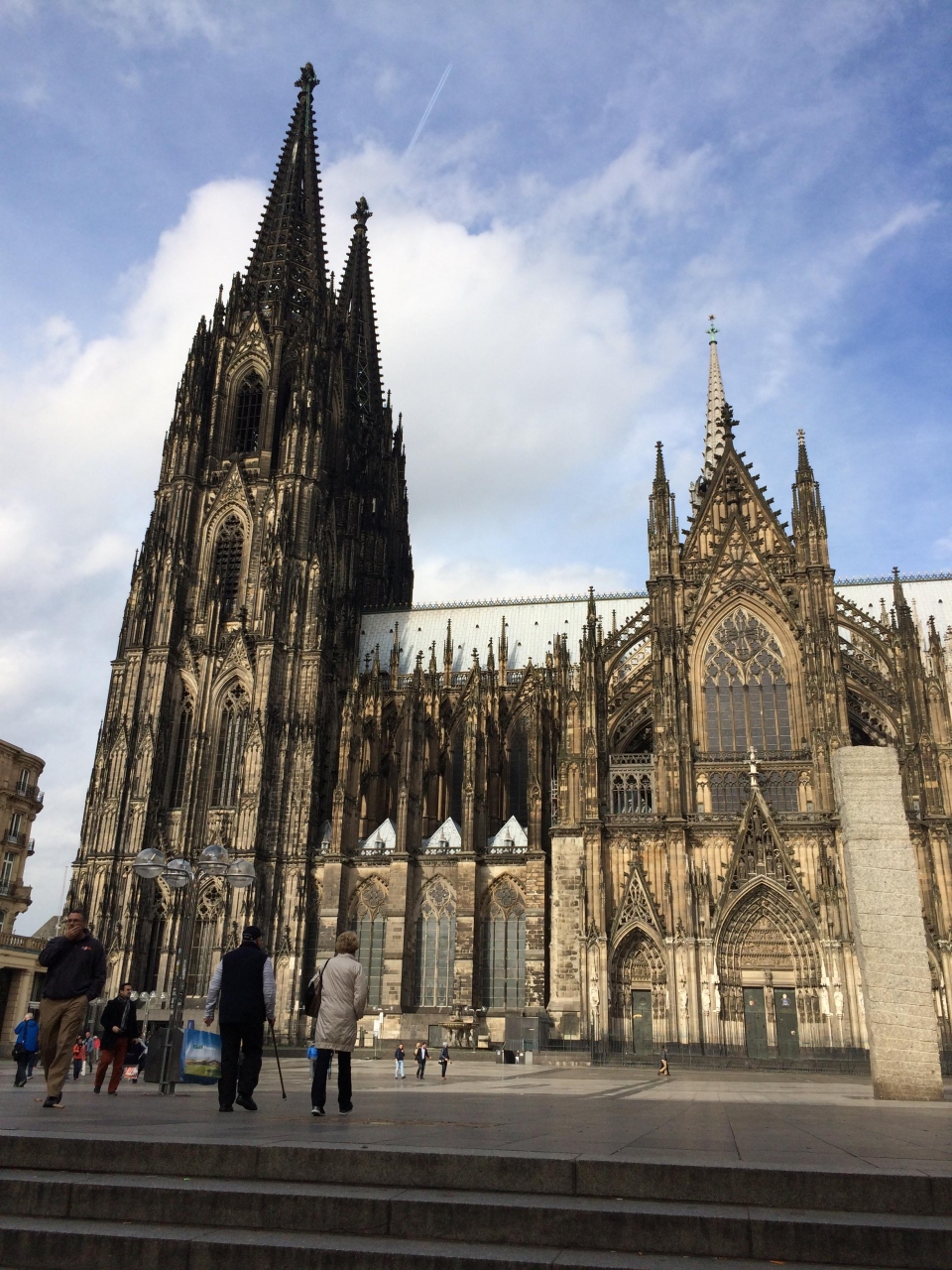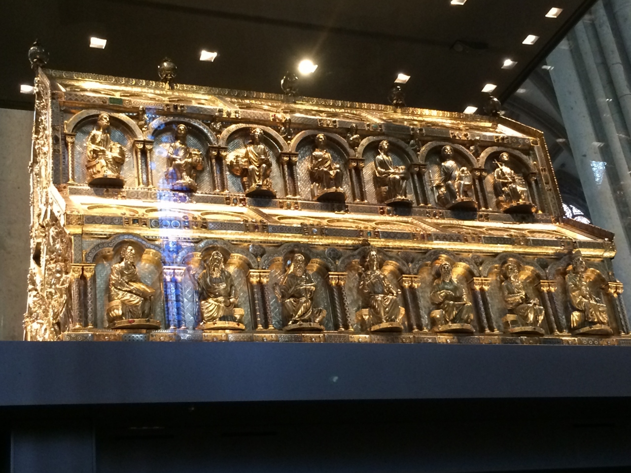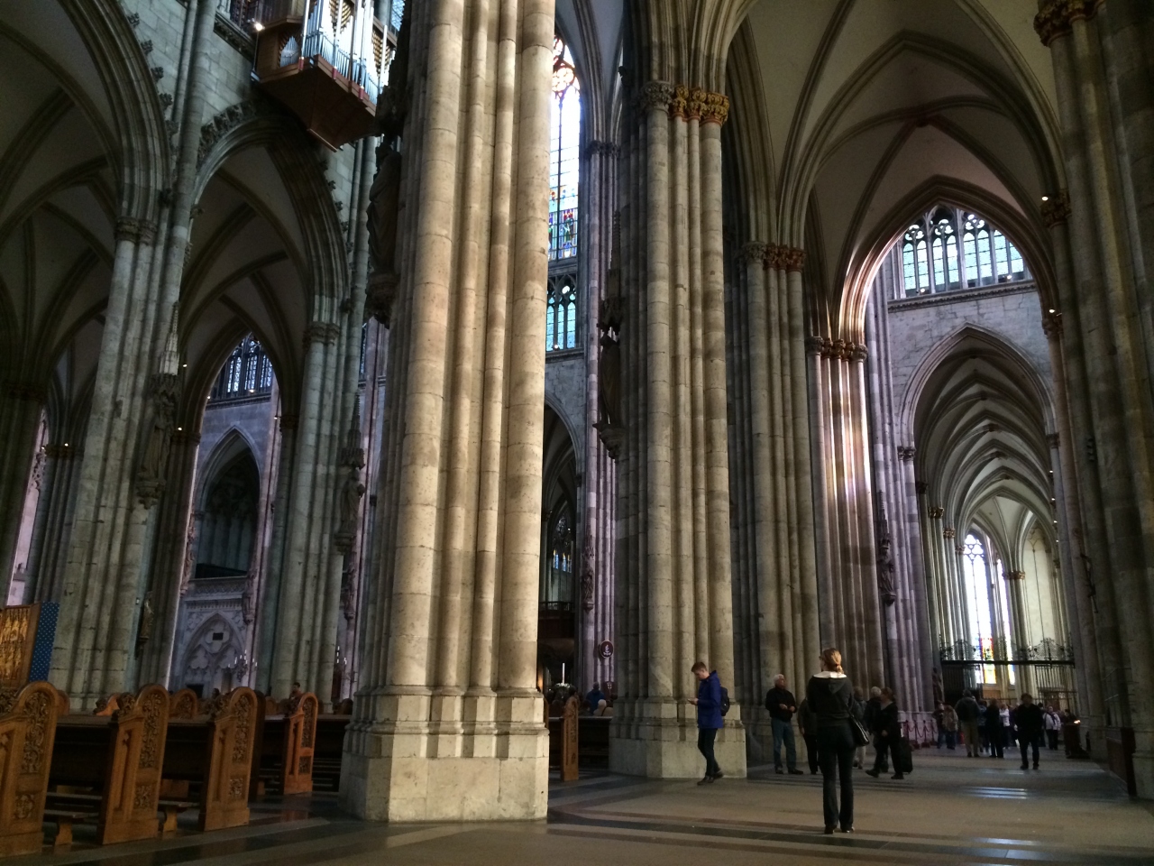 ケルン駅を出てすぐ見えるのが世界文化遺産であるケルン大聖堂で、157mの高さの塔を見るべく観光客を皆上を向いていました。写真を撮るにもあまりにも高い塔のため、あたりをうろうろしながらレンズを除いている様子でした。外装もさることながら、内装のステンドグラスや金色の棺箱はとても綺麗でした。