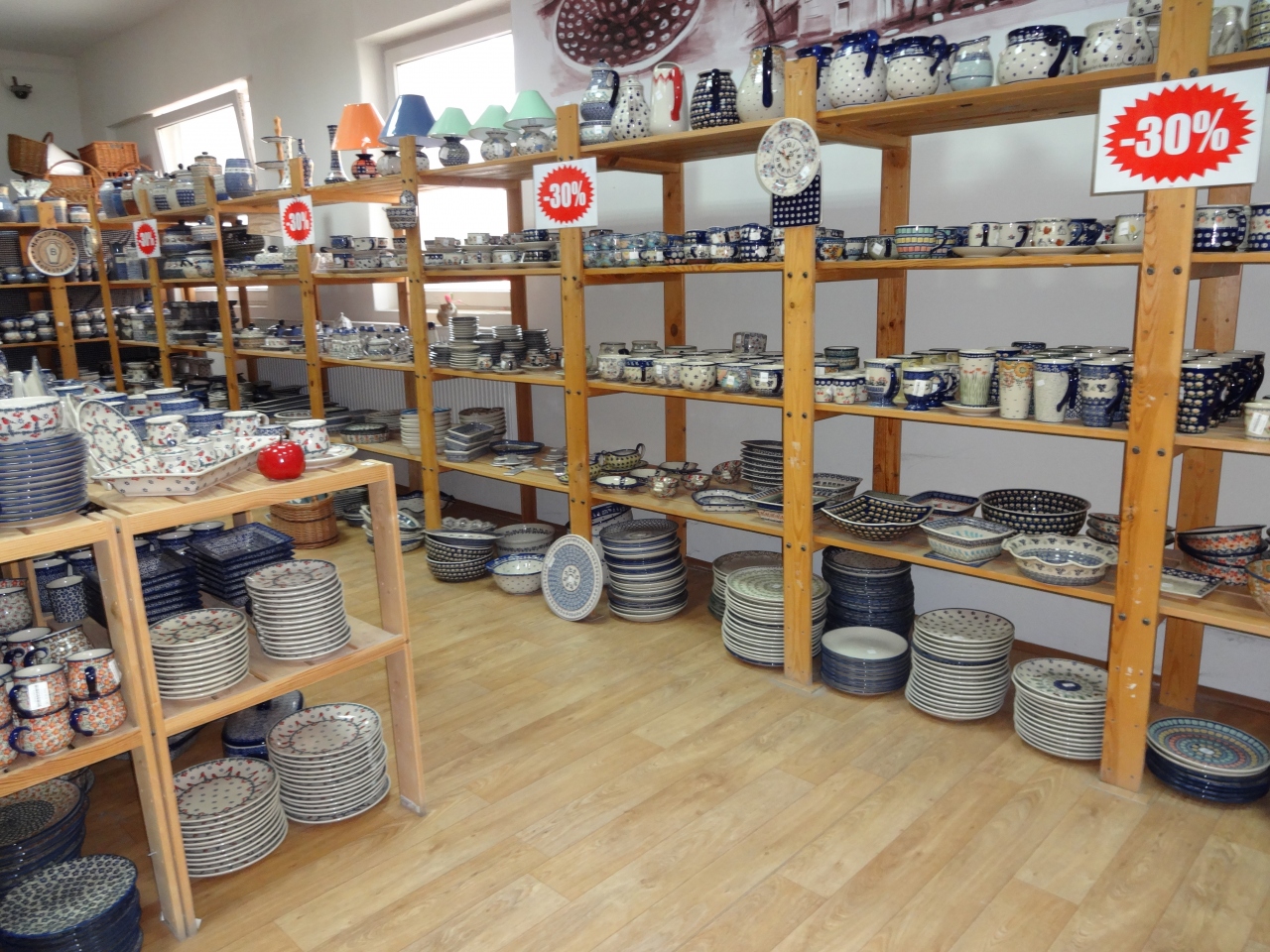 ボレスワヴィエツ中心部からは少し離れています。(車で行く距離)工房併設のアウトレット店ですが品数豊富で選ぶのが大変です。自分の欲しい絵柄や大きさ、組み合わせなど何度も比べたり、カップとソーサーなど乗せて合うかどうかなどじっくりと時間をかける必要がありますが、結果は(物と価格)大満足でした。
