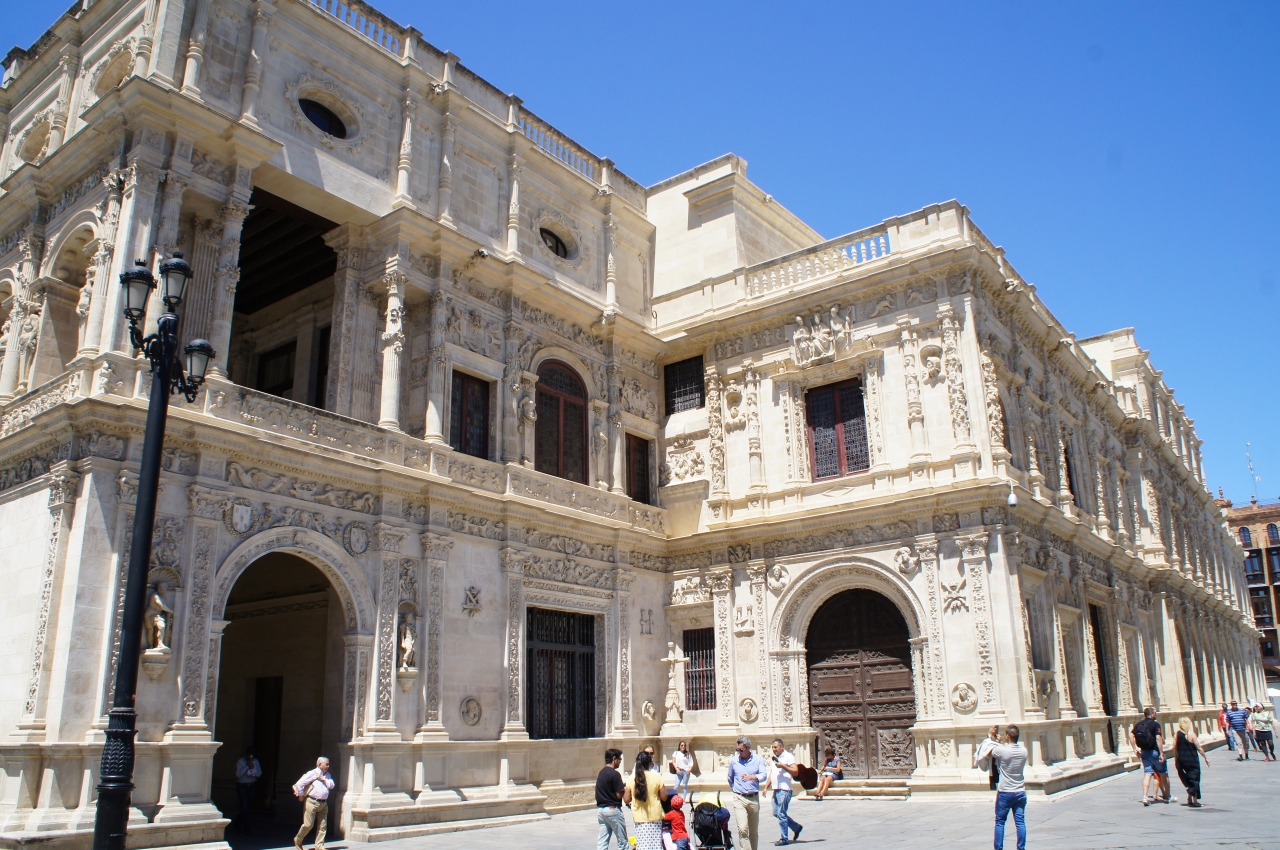 カテドラルからトラムの走る大きな通りを北へ行くと、サン・フランシスコ広場に面して建つ市庁舎に行き当たります。美しい彫刻で装飾された建物はとても市庁舎とは思いないほど壮麗で、かつてのセビーリャの栄華が偲ばれました。