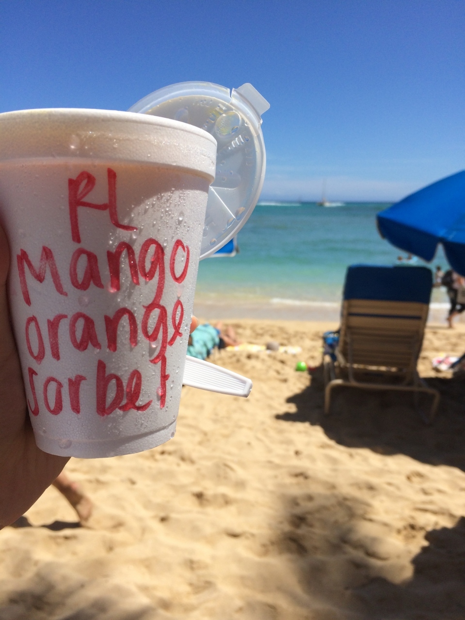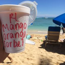 私はマンゴーオレンジソルベを購入し、ビーチに座って食べました。