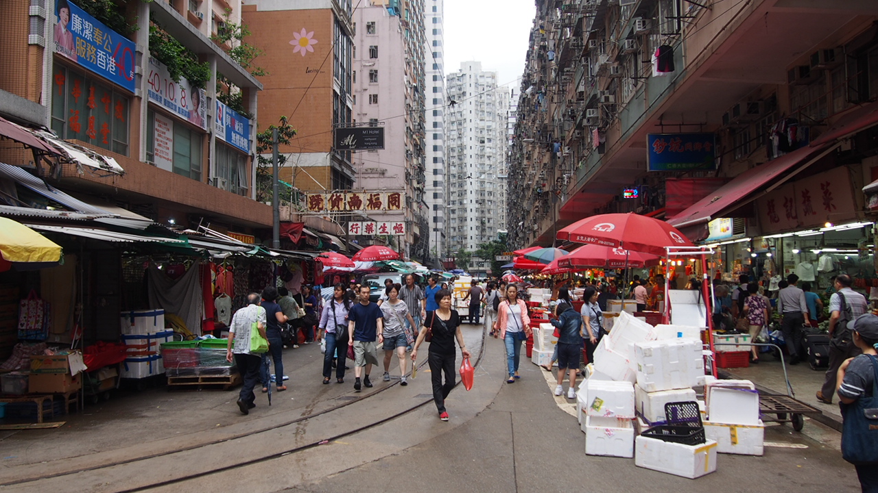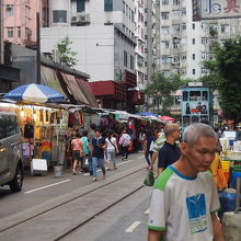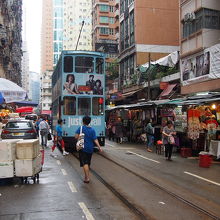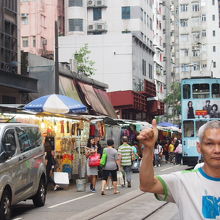 ガイドブックに載っていた、商店街をトラムが掻き分け進む春秧街。