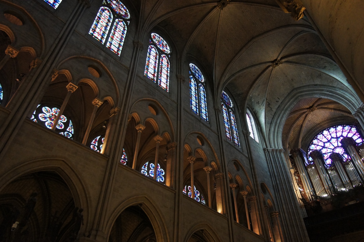 見上げる天井がとても高くて、そしてなんといってもステンドグラスの規模が違います。