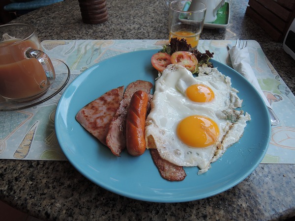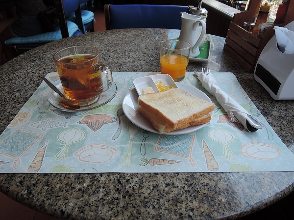 パタヤは安い朝食を食べられるところが意外とありません。ホテルで食べようとすると100バーツ以上することも、珍しいことではありません。ここは朝6時から営業しているので、早めに出発したい人でも安心。朝食65バーツの内容ですが、食パンにソーセージ、目玉焼き、サラダ、紅茶、オレンジジュースです。スクランブルエッグやコーヒーを選択することもできます。味も申し分なく、コスパもいいです。