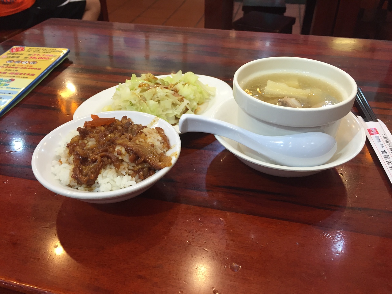 にいきました。魯肉飯小25元と、苦瓜と肉のスープ80元、小菜40元