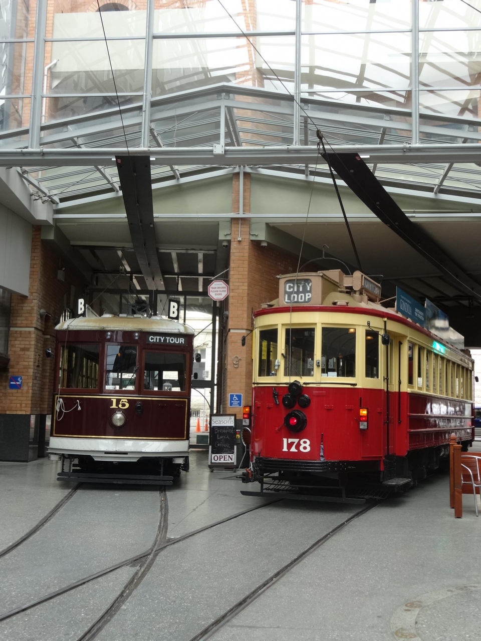 大聖堂前、カンタベリー博物館前、リスタート前など17の駅があり15分~20分毎にトラムが走っています。営業時間は夏(9月-3月)AM9時~PM6時、冬(4月-8月)AM10時~PM5時でした。ニュージーランドらしく運転手さんも、とてもフレンドリーで、トラムの中から街を眺めると、また違った視点でクライストチャーチを観ることが出来ました。