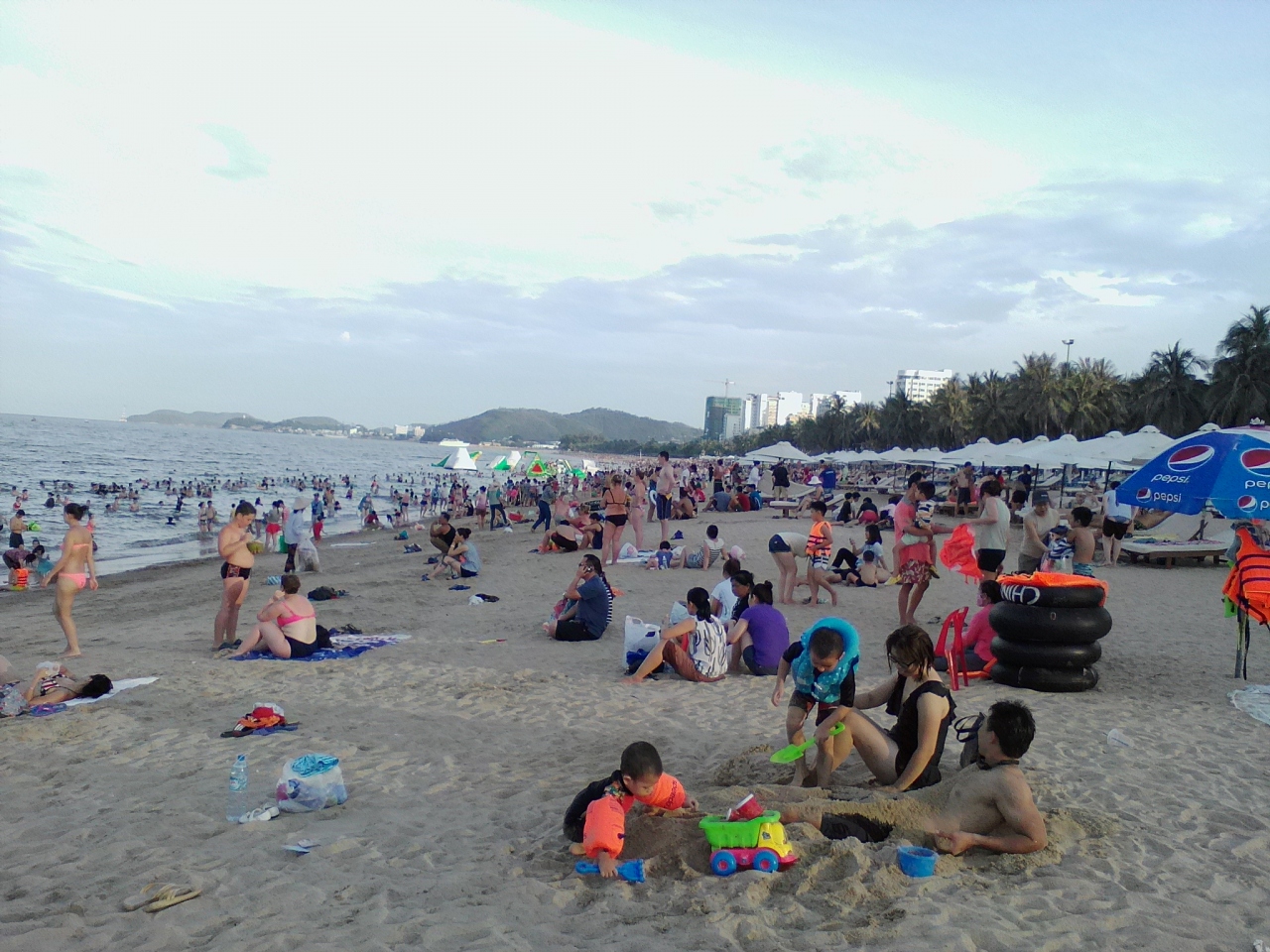 7月に訪れましたが水はそこそこきれいでした。ちゃんと掃除もしているのでゴミもほとんどありません。なかなかいいビーチです。日差しのきつい日中はビーチにいるのは欧米人ばかりですが夕方になるとベトナム人観光客や周辺の住民もどっと繰り出し結構な混雑ぶりです。場所によっては“芋洗い状態”に近いです。朝もスゴいです。早起きして6時頃出かけてみて下さい。驚きの光景が広がっています。