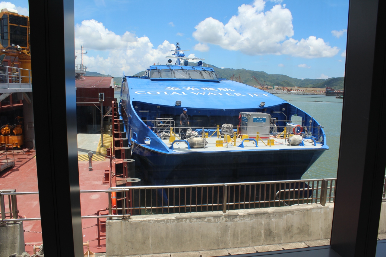九龍のチャイナフェリーターミナルから、マカオのアウターハーバーへ。家族4人、『Cotai First』利用しました。2階の席で、10人程度しか乗ってませんでした。