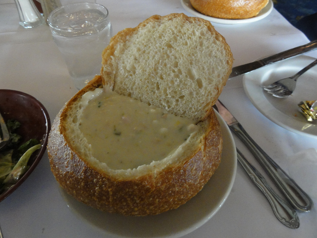 ツアーの昼食で利用。ピア45エリアにあり、レストランは歴史ありそうな雰囲気でした。クラムチャウダーを食べましたが、大きなパンに入りボリューム一杯で、パンは食べ残してしまいました。味はまあまあでした。周辺は屋台もあり、そちらの方が賑わってる感じでした。