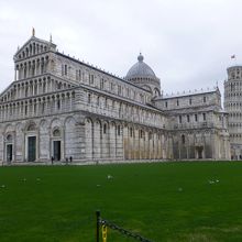 `ピサの斜塔`を見るために、観光バスターミナルから専用バスで「ドゥオーモ広場」に着きました。アッ!と驚きました(-_-?) `ピサの斜塔`は単独では無くて`ピサ大聖堂`の鐘楼だったのです。てっきり単独の建造と思ってました。広場に佇んで一呼吸(何回も!)しました。大聖堂/斜塔/洗礼堂/墓所回廊を観て また広場に戻ってきました。広場の隅にカフェ店のカプチーノを飲んで[小学校以来の斜塔だけ!]は訂正しましたョ(^o-)