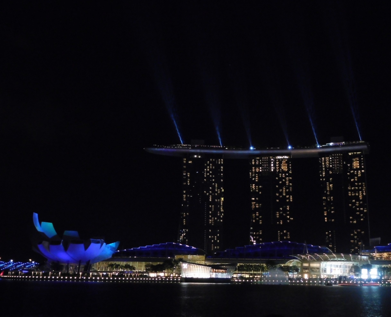 マーライオン広場からショー、ワンダー・フルを見ました。見る場所で感じが違うと思います。