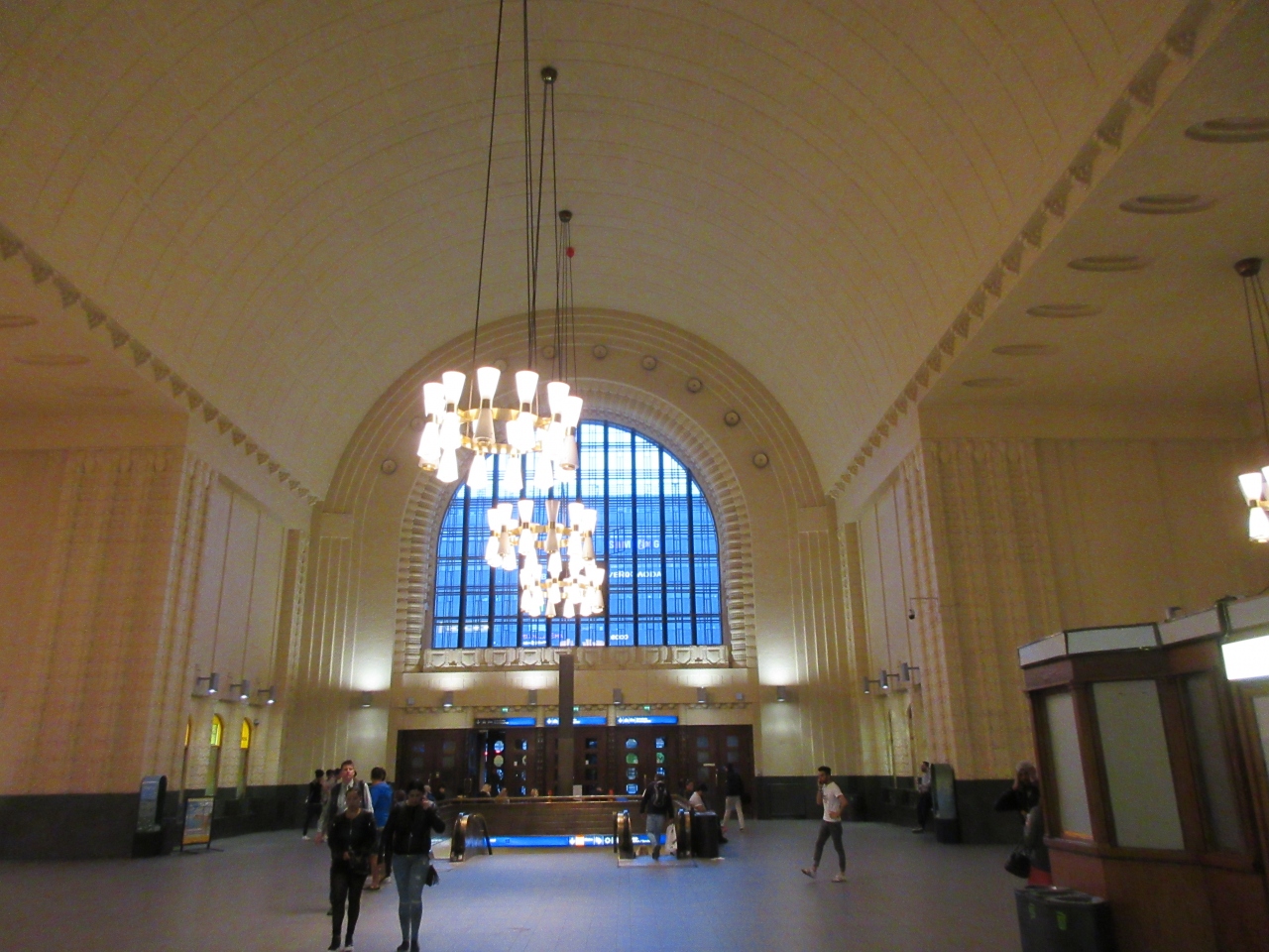 ヘルシンキの中心にあり、空港からのシャトルバスも発着する上、鉄道、バス、トラム、地下鉄の駅、停留所があります。私も観光の起点として使っていました。駅舎の外観も個性的で正面玄関には左右に2体ずつ、ランプを持った石像が鎮座していますし、遠くからも見える時計台も印象的です。内部は吹き抜けで解放感があるわりに全体としては重厚感を維持しています。