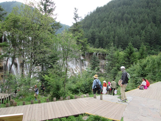 旅行前の私が湖だけかと思っていた九寨溝には大小さまざまな滝がありますが、名前の付いた滝はどれも大きくてカメラには収まりきれません。ここもそのうちの1つ。